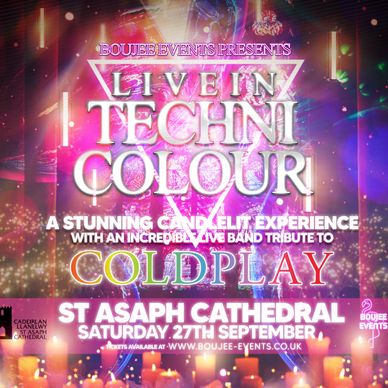 Step inside the stunning St Asaph Cathedral for an unforgettable night as Live in Technicolor, the UK’s leading Coldplay tribute band, brings the iconic sound of Coldplay to life—by candlelight.