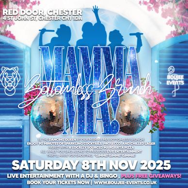 Slip on your dancing shoes and get ready to say “Gimme! Gimme! Gimme!” to Chester’s very first Mamma Mia Inspired Bottomless Brunch at Red Door – the ultimate celebration of music, food, and fun!